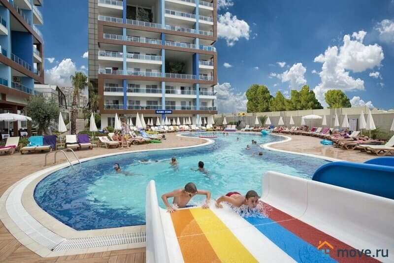 Открытый бассейн с водными горками